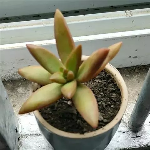 2. 八千代的叶尖在光照良好、气温偏低或有一定温差的环境下呈橙色或橙黄色,乙女心的叶尖在相同环境下则呈红色或粉红色(相对来说乙女心的叶色变化差异更大);