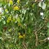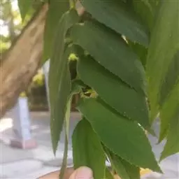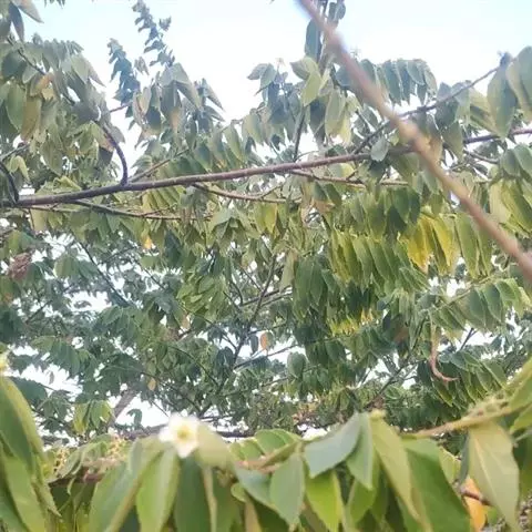 枝叶:枝叶婆娑茂密, 茎皮纤维发达,枝条较柔软,尾部略下垂,叶腋可生枝条,形成“假二回” 或“假三回”羽状复叶效果。叶片纸质,长卵形或长椭圆状卵形,基部偏斜,翠绿清秀。 文定果(花)