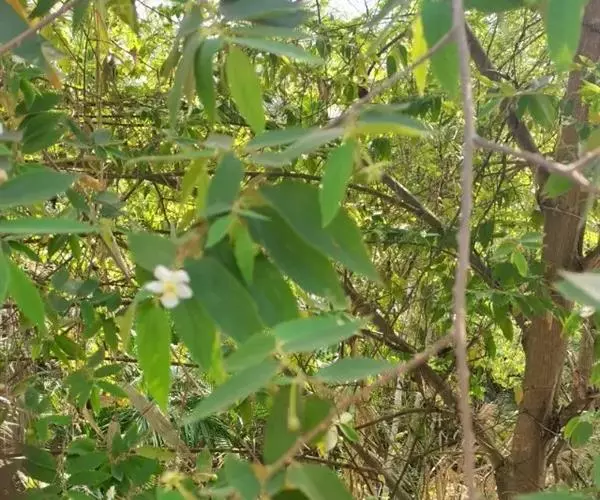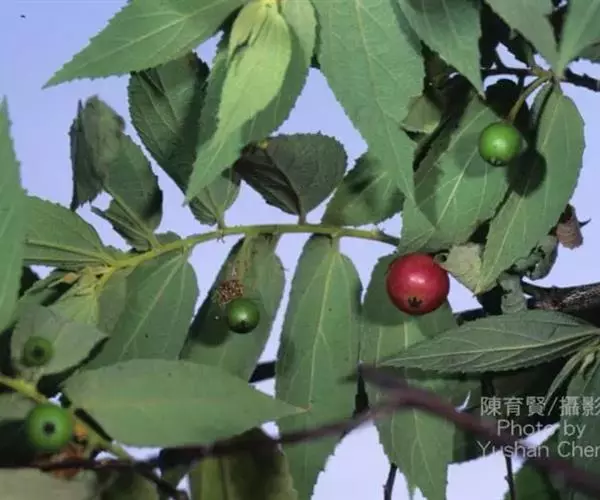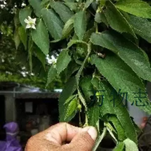 常绿小乔木,高达5~8m。树皮光滑较薄,灰褐色。小枝及叶被短腺毛,叶片纸质,单叶互生,长圆状卵形,长4~10cm,宽1.5~4cm。掌状,先端渐尖,基部斜心形,3~5主脉,叶缘中上部有疏齿,粮棉油星状绒毛。花两性,单生或成对着生于上部小枝的叶腋花萼合生,萼片5枚,分离,长10~12mm,宽约3mm,两侧边缘内折而成舟状,先端有长尾尖,开花时花萼反折。花期长,花瓣5枚,白色,倒阔卵形,具有瓣柄,全缘。先端边缘波状,长10~11mm,宽约9mm,雄蕊多数,子房无毛,5~6室, 每室有胚珠多枚。柱头 5~6 浅裂, 宿存。花盘杯状。盛花期3~4月,周年有果成熟,6~8月为果熟期。果实多汁浆果,球形或近球形,直径约1cm。成熟时为红色,无毛,内含种子。种子椭圆形,极细小 。