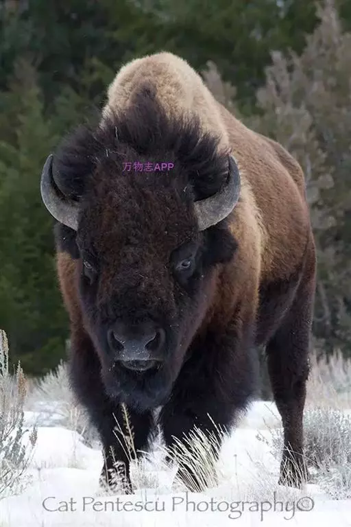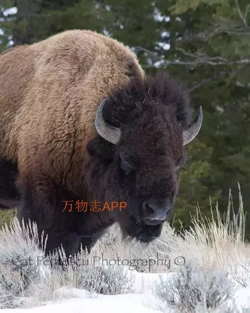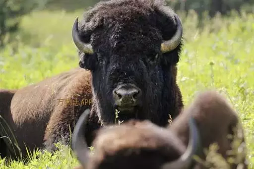 雌性野牛个头比雄性小,驼峰也较小的,颈部略瘦,牛角也更为纤细。