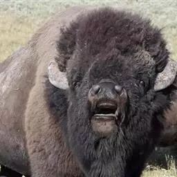 美洲野牛,学名:Bison bison (Linnaeus, 1758);英文名:American bison),牛科美洲野牛属的一种动物。又名美洲水牛或犎牛,是北美洲体型最大的哺乳动物和世界上最大野牛之一。也是一种比较凶悍的动物,体重可达1000千克,头上长有一对向上弯曲锋利的双角,即使面对最富攻击性的捕食动物,也毫不退缩。它们长有深暗的栗子褐色毛发,有如同小丘一样的大肩膀。在种群之内,各自的公牛形成一个集体并保卫族群中的母牛,在6-9月期间是美洲野牛的繁殖期。每头母牛每年能诞生一头小牛。