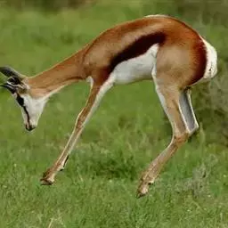 跳羚是哺乳纲、偶蹄目、牛科哺乳动物,属于中型的羚羊。四肢细长;背面毛色黄褐,…