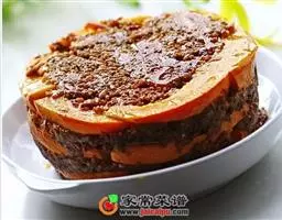 南瓜蒸肉是由南瓜和猪肉为主要食材做成的一道美味菜品,具有咸鲜味,也是一道独具特色的名菜,属于浙菜系…