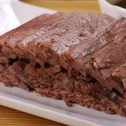 把瘦肉切成一块块的块状,如果内中含有肥肉,要切除干净,不能含有一点点,其三是加上酱油以及特别的香料配方,放到锅中红烧,红烧时火候要掌握好,直到把所有的配料全部吸进了肉内为止;