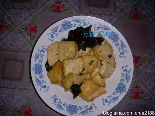 1、将豆腐上锅蒸熟,取出切丁;木耳用温水泡,发后洗净切丁,火腿切丁;