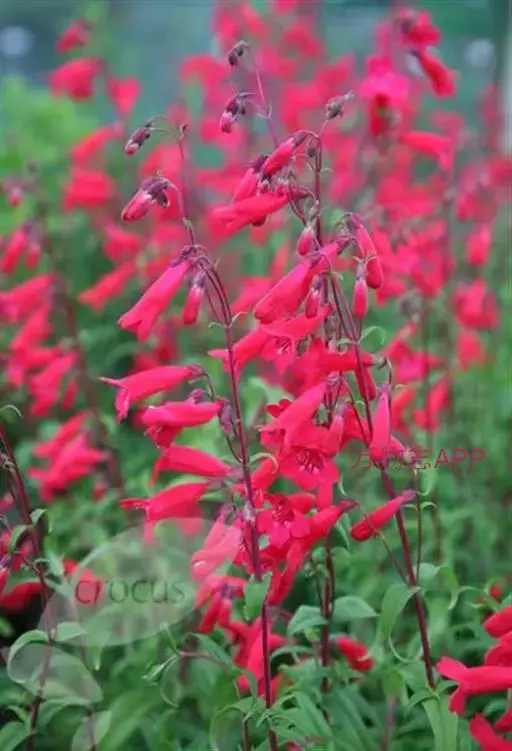 玄参科钓钟柳属,多年生草本,株高达90cm。单叶,对生或基生,披针形、线形,全缘,光滑或有毛。总状花序,亮红色,小花长2.5cm;花冠二唇裂,下唇反卷有毛;上唇突出;雄蕊5枚,雌蕊1枚;花期夏季,蒴果秋季成熟。有粉花及红花栽培品种。
