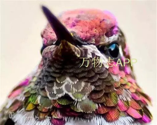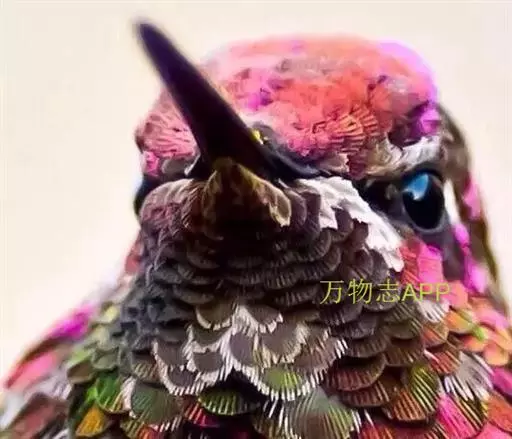 成年雄性头部羽毛上的结构色会随光线角度而变化,所以看着会各种变色。它是唯一头部有粉红色冠冕的北美蜂鸟。