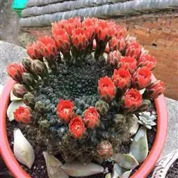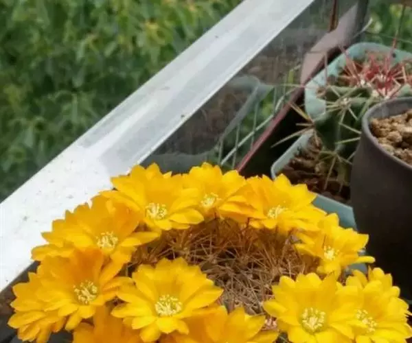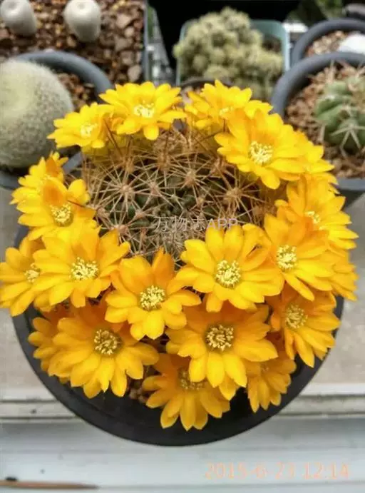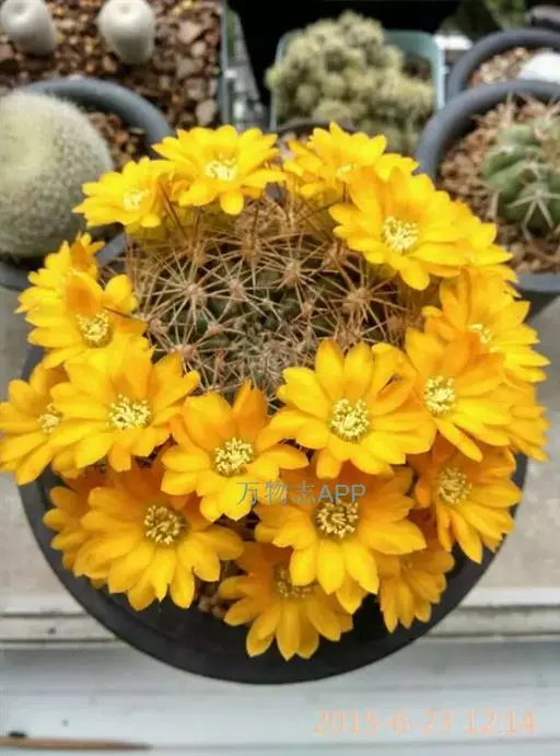 外观:此品种外观变化多样,通常为单株球状至短柱状 根:束状须根,无块根 刺:硬刺,基部为白色,至末端逐渐成为黑色,中刺2~8,边刺数目5~24支不定 疣粒:约有16~18盾状疣粒 花:花瓣黄色,与其他Rebutia属品种比较起来,此品的开花位置比较靠近生长点些,花季可由春季开至秋季