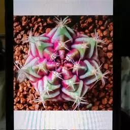 绯花玉 Speg.)是仙人掌科、裸萼球属多肉植物,植株呈扁球形,表皮墨绿色,刺针状,…
