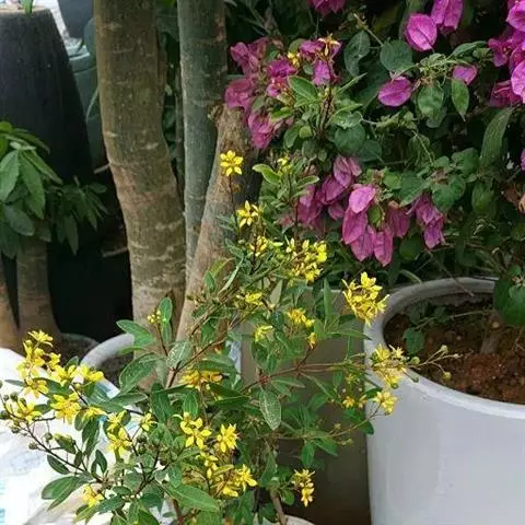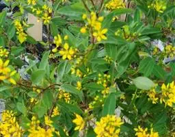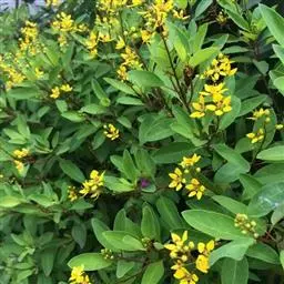 金英常绿灌木,株高约50-160厘米,嫩茎红色。叶片绿色,对生,椭圆形,先端尖,基部楔形,全缘。…