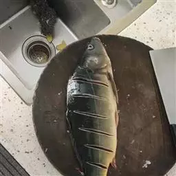 将鱼去鳞、鳃、内脏,洗净,在鱼身上两面划斜十字纹数个。