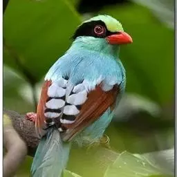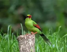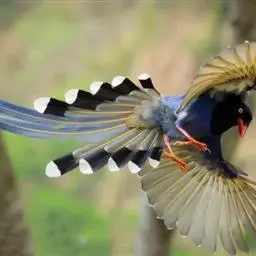 蓝绿鹊:中型鸟类,共有5个亚种。体长36-38厘米。尾长,嘴、脚红色。通体羽色主要为草绿色,…