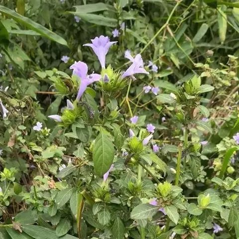 马蓝,多年生草本,高30~1750px。干时茎叶呈蓝色或黑绿色。根茎粗壮,断面呈蓝色。地上茎基部稍木质化,略带方形,稍分枝,节膨大,幼时被褐色微毛。叶对生;叶柄长1~100px;叶片倒卵状椭圆形或卵状椭圆形,长6~375px,宽4~200px;先端急尖,微钝头,基部渐狭细,边缘有浅锯齿或波状齿或全缘,上面无毛,有稠密狭细的钟乳线条,下面幼时脉上稍生褐色微软毛,侧脉5~6对。花无梗,成疏生的穗状花序,顶生或腋生;苞片叶状,狭倒卵形,早落;花萼裂片5,条形,长1~35px,通常一片较大,呈匙形,无毛;花冠漏斗状,淡紫色,长4.5~137.5px,5裂近相等,长6~7mm,先端微凹;雄蕊4,2强,花粉椭圆形,有带条,带条上具两条波形的脊;子房上位,花柱细长。蒴果为稍狭的匙形,长1.5~50px。种子4颗,有微毛。花期6~10月,果期7~11月。