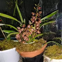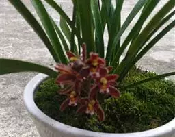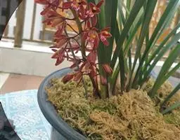 寒兰 植料是否适合兰的特性,是否有利于兰花的正常生长,是养好兰花的关键。笔者用过塘基石、植金石,也用过陶土、仙土、碎砖粒,还用过多种植料配成的混合料,通过栽培对比试验发现,都是掺有一定数量山泥(腐殖土)的混合料所养的寒兰长势最好,不但根系发达,而且发苗率、开花率均高于用其他植料的对比组。故得出结论:寒兰的正常生长和开花需要各种较全面的养分,用无土栽培的各种施肥方式难于满足寒兰生长需求的养分可以从掺入的山泥中得到供给,所以长势较好。现推荐通过数年对比试验证明较适合栽培寒兰的植料配方:塘基石或植金石(也可用其他硬植料或河沙代替)40%,山泥(最好是兰花原生地的黑色腐殖土)35%,栽过食用菌的菌糠或废木屑(经太阳曝晒或消毒)15%,蛇木(或用蕨根代替)10%%混合而成。