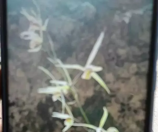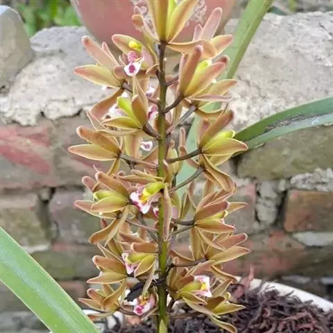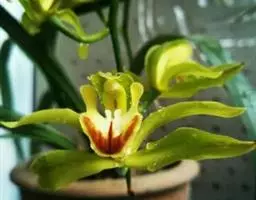 花葶发自假鳞茎基部,长25-60(-80)厘米,直立;总状花序疏生5-12朵花;花苞片狭披针形,最下面1枚长可达4厘米,中部与上部的长1.5-2.6厘米,一般与花梗和子房近等长;花梗和子房长2-2.5(-3)厘米;花常为淡黄绿色而具淡黄色唇瓣,也有其他色泽,常有浓烈香气;萼片近线形或线状狭披针形,长3-5 (-6)厘米,13.5-5(-7)毫米,先端渐尖;花瓣常为狭卵形或卵状披针形,长2-3厘米,宽5-10毫米;唇瓣近卵形,不明显的3裂,长2-3厘米;侧裂片直立,多少围抱蕊柱,有乳突状短柔毛;中裂片较大,外弯,上面亦有类似的乳突状短柔毛,边缘稍有缺刻;唇盘上2条纵褶片从基部延伸至中裂片基部,上部向内倾斜并靠合,形成短管;蕊柱长1-1.7厘米,稍向前弯曲,两侧有狭翅;花粉团4个,成2对,宽卵形。
