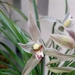 寒兰的花瘦而长、匀称、飘逸,充满生机和神秘色彩。花色匀称,色泽艳丽、鲜美,肩平,唇瓣平直,素心或少有紫色斑状,花大,花梗花色相一致的即是好品种。