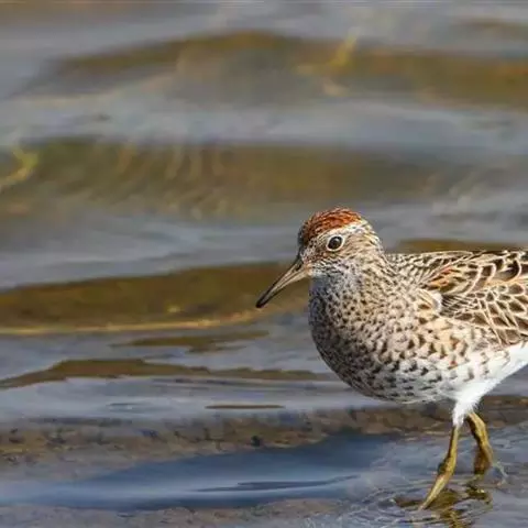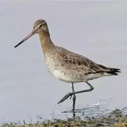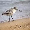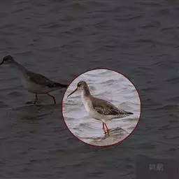 红脚鹬:体长28厘米,上体褐灰,下体白色,胸具褐色纵纹。飞行时腰部白色明显,次级飞羽具明显白色外缘。…
