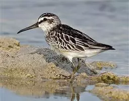 三趾鹬体长约20厘米,是一种近灰色的涉禽。肩羽明显黑色。比其他滨鹬白,飞行时翼上具白色宽纹;尾中央…