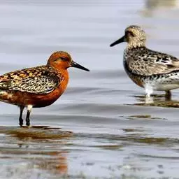 翻石鹬:体重82-135克,体长180-240毫米。体型高矮兼称,看起来十分的滑稽。…