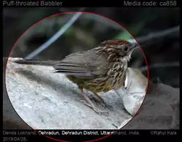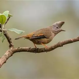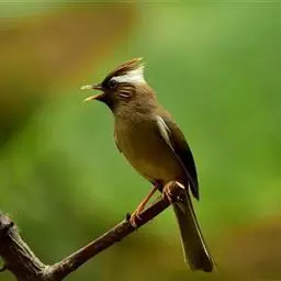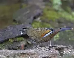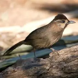 纹喉凤鹛:小型鸟类,体长13-16厘米。头顶和羽冠暗褐色或褐灰色,上体橄榄褐色,飞羽黑褐色,…