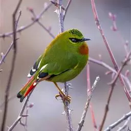 白腹凤鹛是绿鹃科、绿凤鹛属的小型鸟类,体长10-12厘米。上体从头到尾黄绿色,有短的羽冠,…