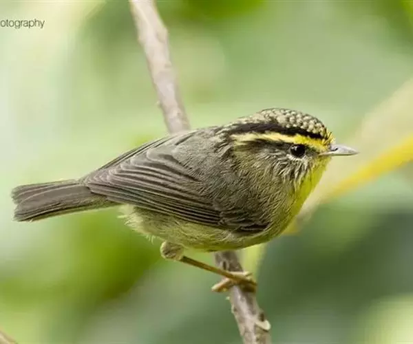 金头穗鹛小型鸟类,体长10~11厘米,是一种黄色小鸟。头顶金黄色有黑色纵纹,眼先黑色,…