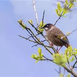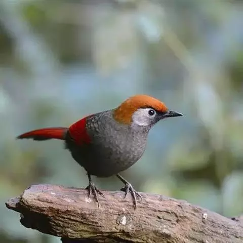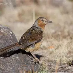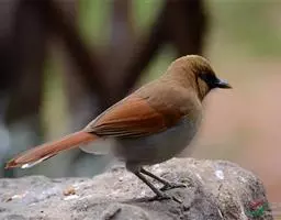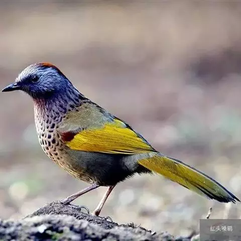 大噪鹛:中型鸟类,体长32-36厘米。额至头顶黑褐色,背栗褐色满杂以白色斑点,…