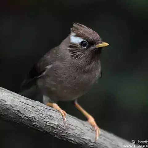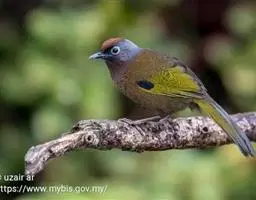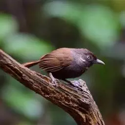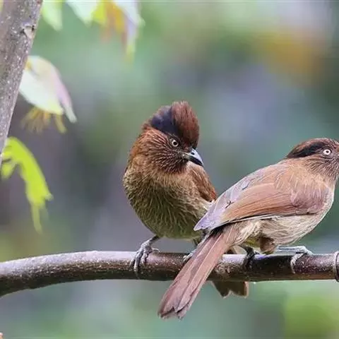 黑顶噪鹛:中型鸟类,体长24-26厘米。前额、脸、颏、喉黑色,头顶黑褐沾棕或深棕橄榄褐色,…