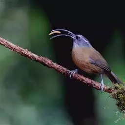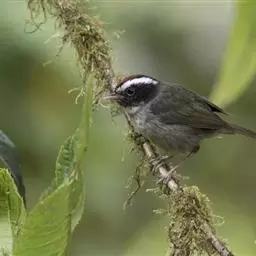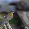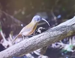 剑嘴鹛:中型鸟类,体长21-22厘米。嘴特别细长而向下弯曲,头顶和头侧烟灰色具长而窄的白色眉纹,…