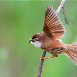 金眼鹛雀是莺科、鹛雀属小型鸟类。体长16-20厘米。头顶和上体棕褐色,两翅表面肉桂红色,…