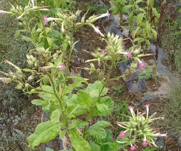 烟草(学名:Nicotiana tabacum L.)是茄科烟草属植物,一年生或有限多年生草本,全体被腺毛;根粗壮。茎高0.7-2米,基部稍木质化。叶矩圆状披针形、披针形、矩圆形或卵形,顶端渐尖,基部渐狭至茎成耳状而半抱茎。花序顶生,圆锥状,多花;花梗长5-20毫米。蒴果卵状或矩圆状,长约等于宿存萼。种子圆形或宽矩圆形,径约0.5毫米,褐色。夏秋季开花结果。