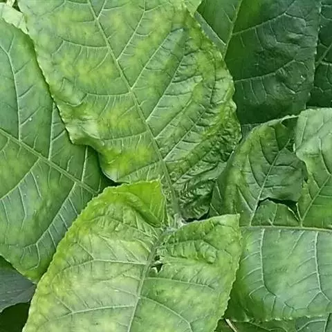 花叶病:花叶病在苗床期和大田期都会发生,主要是通过接触传染,但蚜虫也可传染部分品种。不注意卫生操作是造成花叶病大流行的关键,带病烟苗是大田发病的重要因素。还没有单一的花叶病治疗方法,必须以防为主。可通过合理轮作,搞好田间卫生,强调卫生操作,并防治蚜虫。切断传染途径,在病毒进入之前进行施药预防。一般在幼苗期施药1-2次,并且在施药1天后带药移栽,移栽后还应施药2-3次。常用药剂有病毒清,毒消和菌克毒克等。