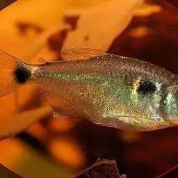 眼斑双锯鱼,背鳍硬棘被橘黄色斑块分割为5-6枚,第4枚最长,约为头长的2.1-2.9倍。胸鳍、臀鳍…
