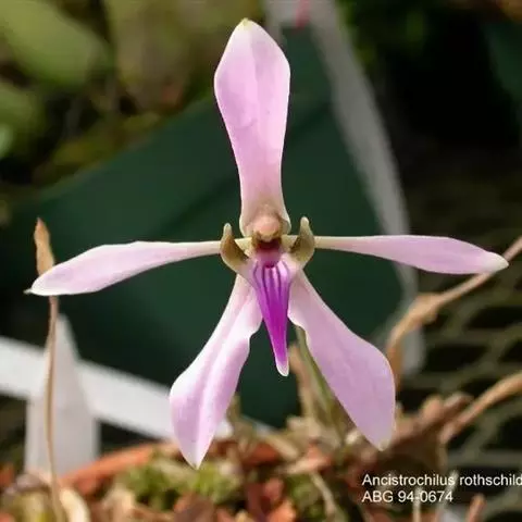 大尖囊兰 Sweet):根簇生,扁平,长而弯曲。茎短,长1-1.5厘米,具3-4枚叶。叶二列,纸质…