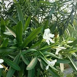 白花夹竹桃是夹竹桃科、夹竹桃属植物夹竹桃的栽培品种。常绿直立大灌木,枝条灰绿色;嫩枝条具稜,被微毛,…