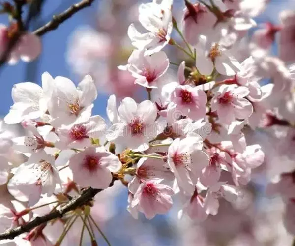 东京樱花(学名:Cerasus yedoensis (Matsum.) Yu et Li):乔木,高4-16米,树皮灰色。小枝淡紫褐色,无毛,嫩枝绿色,被疏柔毛。冬芽卵圆形,无毛。叶片椭圆卵形或倒卵形,上面深绿色,无毛,下面淡绿色,沿脉被稀疏柔毛。花序伞形总状,总梗极短,有花3-4朵,先叶开放,花直径3-3.5厘米;花瓣白色或粉红色,椭圆卵形,先端下凹,全缘二裂;雄蕊约32枚,短于花瓣;花柱基部有疏柔毛。核果近球形,直径0.7-1厘米,黑色,核表面略具棱纹。花期4月,果期5月。2n=16。