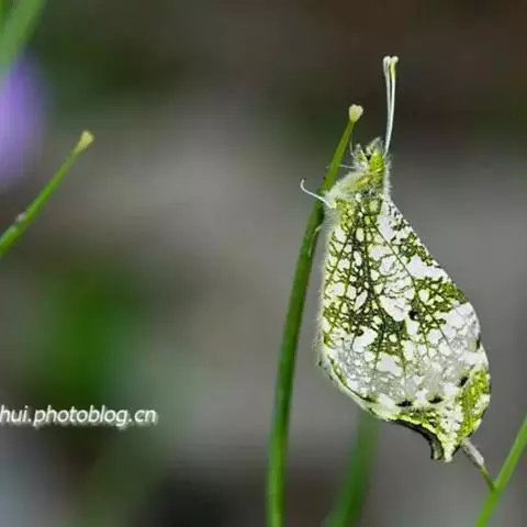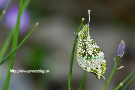 该蝶1年发生1代,以蛹在寄主植物上越冬。成虫2月下旬始见,幼虫共5龄。在室内饲养的条件下,卵期为4~5 d,幼虫期为20~28 d,蛹期为270~300 d。主要危害油菜、碎米荠等多种植物。幼虫以花蕾、叶片为食料