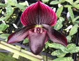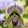 兜兰花比较雅致,色彩比较庄重,色及带有不规则斑点或条纹。花瓣较厚,花朵开放期比较长。属观赏类花草。