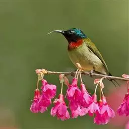 纹背捕蛛鸟:为太阳鸟科捕蛛鸟属的鸟类。是太阳鸟科中体型较大的一种,体重25-45克,…
