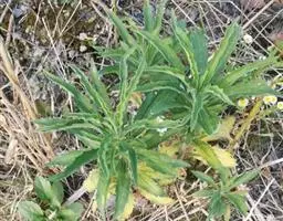 叶密集,基部叶花期常枯萎,下部叶倒披针形,长6-10厘米,宽1-1.5厘米,顶端尖或渐尖,基部渐狭成柄,边缘具疏锯齿或全缘,中部和上部叶较小,线状披针形或线形,近无柄或无柄,全缘或少有具1-2个齿,两面或仅上面被疏短毛边缘常被上弯的硬缘毛。