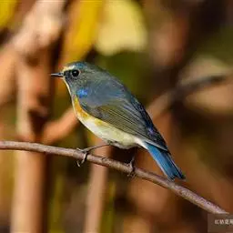 红胁蓝尾鸲(学名:Tarsiger cyanurus)俗名:蓝点冈子、蓝尾巴根子、蓝尾杰、蓝尾欧鸲。体型略小而喉白的鸲。特征为橘黄色两胁与白色腹部及臀成对比。雄鸟上体蓝色,眉纹白;亚成鸟及雌鸟褐色,尾蓝。雌鸟与雌性蓝歌鸲的区别在喉褐色而具白色中线,而非喉全白,两胁橘黄而非皮黄。