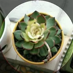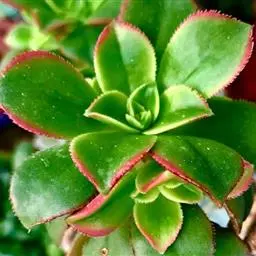 红缘莲花掌属蔷薇目、景天科植物,原产大西洋的加那利群岛。质厚,蓝绿色,被白霜,叶缘红褐色。聚伞花序,…