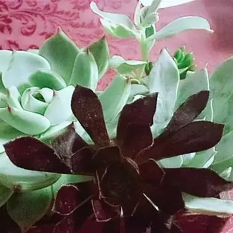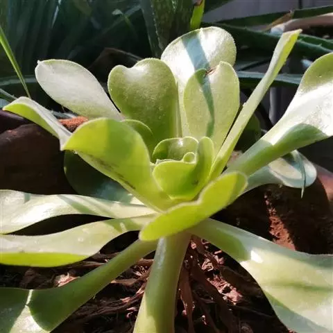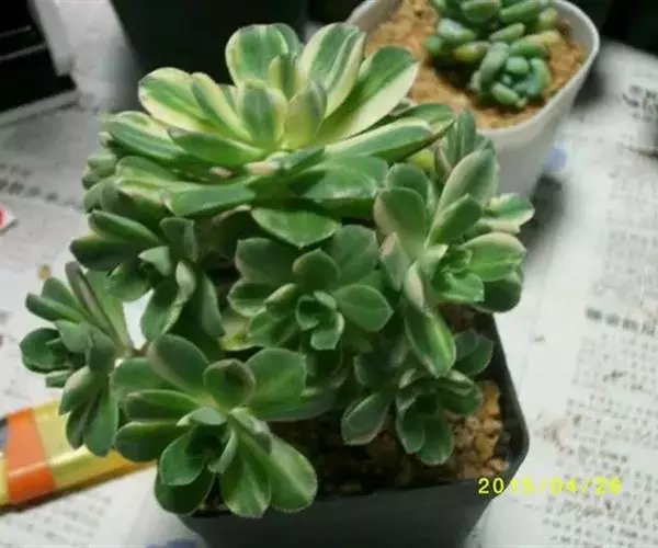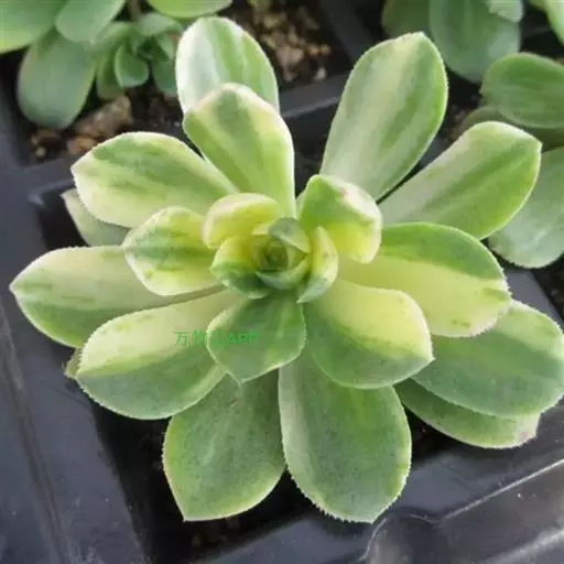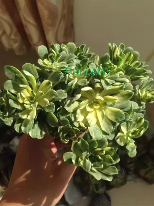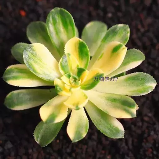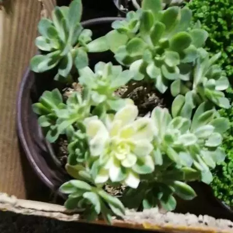 爱染锦(Aichryson × domesticum),别名黄笠姬锦、墨染,景天科莲花掌属多肉植物,原产地位于大西洋诸岛、北非和地中海沿岸,叶美,可观赏,亦可净化空气。