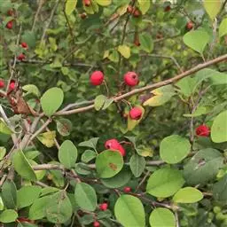 水栒子是蔷薇科栒子属的落叶灌木。高达4米,幼时带紫色,叶卵形或宽卵形,先端尖或钝圆,…