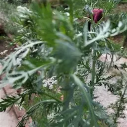 菊科,一年生或二年生草本植物,叶互生,长形羽状分裂,花黄色或白色,与野菊花很像。瘦果棱,高二三尺,茎叶嫩时可食,亦可入药。