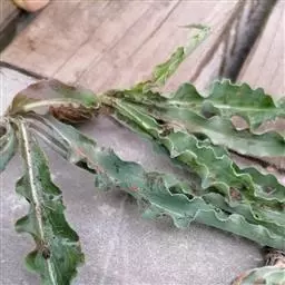 症状特征:主要为害茎蔓、叶片和果实。茎基部染病,初生水渍状斑,后扩展成淡褐色,造成茎基软腐或纵裂,病部表面生出白色棉絮状菌丝体。叶片染病,叶面上现灰色至灰褐色湿腐状大斑,病斑边缘与健部分界不明显,湿度大时斑面上现絮状白霉,终致叶片腐烂。果实染病,初现水浸状斑,扩大后呈湿腐状,其表现密生白色棉絮状菌丝体,发病后期病部表面现数量不等的黑色鼠粪状菌核。