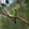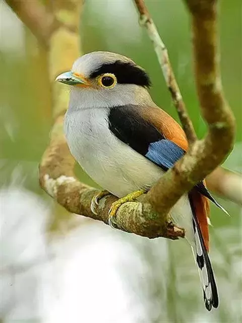 长尾阔嘴鸟是雀形目阔嘴鸟科的鸟类,体长约25厘米,是绿色阔嘴鸟。形长的楔形尾蓝色,喉及脸黄色,顶冠…