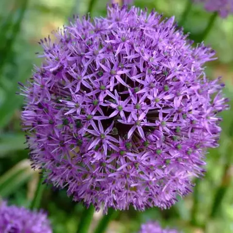 鳞茎常单生,卵状至狭卵状,或卵状柱形,粗0.7-2(-2.5)厘米;鳞茎外皮污黑色或黑褐色,纸质,顶端常破裂成纤维状,内皮有时带淡红色,膜质。叶三棱状条形,中空或基部中空,背面具1纵棱,呈龙骨状隆起,短于或略长于花葶,宽(1.5-)2-5毫米。花葶中生,圆柱状,中空,高30-70厘米,1/4-1/2被疏离的叶鞘;总苞单侧开裂或2裂,宿存;伞形花序球状,具多而极密集的花;小花梗近等长,比花被片长2-4倍,基部具小苞片;花红色至紫色;花被片椭圆形至卵状椭圆形,先端钝圆,长4-6毫米,宽2-3.5毫米,外轮舟状,较短;花丝等长,约为花被片长的1.5倍,锥形,无齿,仅基部合生并与花被片贴生;子房倒卵状球形,腹缝线基部具有帘的凹陷蜜穴;花柱伸出花被外。花果期8月底至10月。