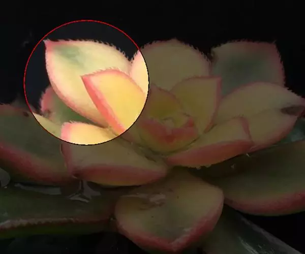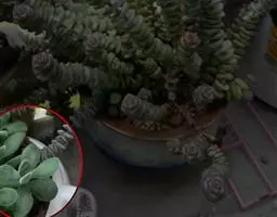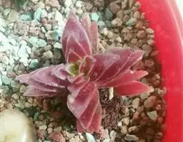 叶子表面宽厚,富肉质感且带有磨纱质感,看像石头质地;开红色小花,生于植株顶部,倒伞形密生,形状像花…