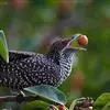绿嘴地鹃:体形似小鸦鹃,但羽色大致绿灰;嘴绿色,头侧眼的周围有一裸区;后爪弯曲。虹膜赤红色,…